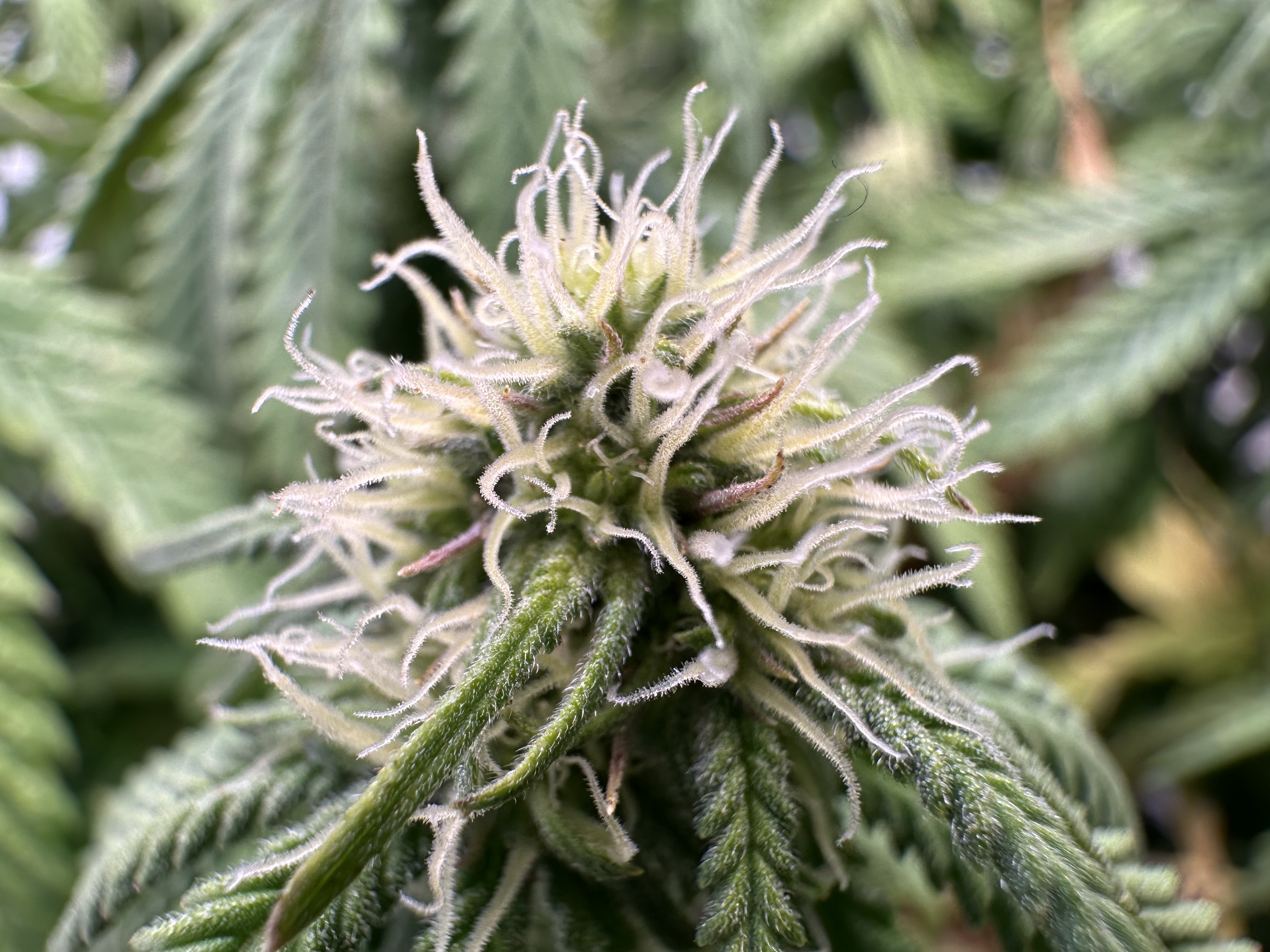 Umtopfen in Blüte ist leider echt Stress pur (Wurzelstörung + Hormonshift), aber jetzt ist's gemacht – sie scheint's ja wegzustecken, Buds sehen nice aus.