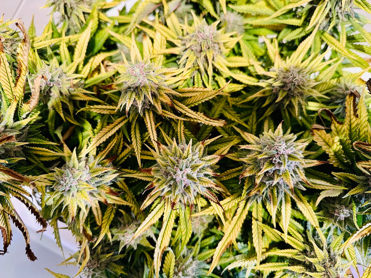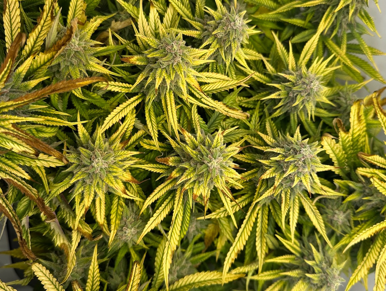 Bis nach gut 4 Wochen Blüte Mangelerscheinungen an den Blättern auftraten, die sich auch mit Dünger nicht beheben ließen.