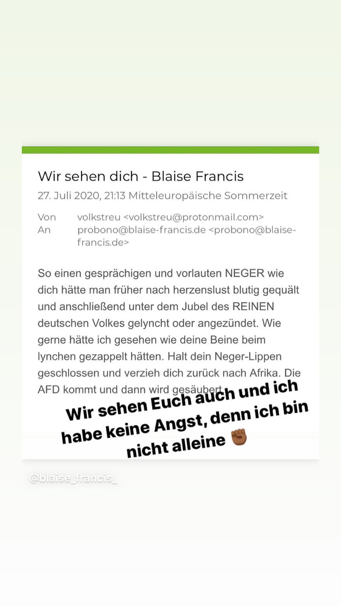 Der Rechtsanwalt "Blaise Francis", wird für sein Engagement für Opfer von rassistisch motivierten Straftaten bedroht.