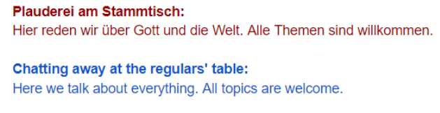 Here at the regulars' table, the focus is on fun and togetherness. In real life, God knows we have enough everyday problems. So we don't have to take the worries that each of us has to the regulars' table with us.