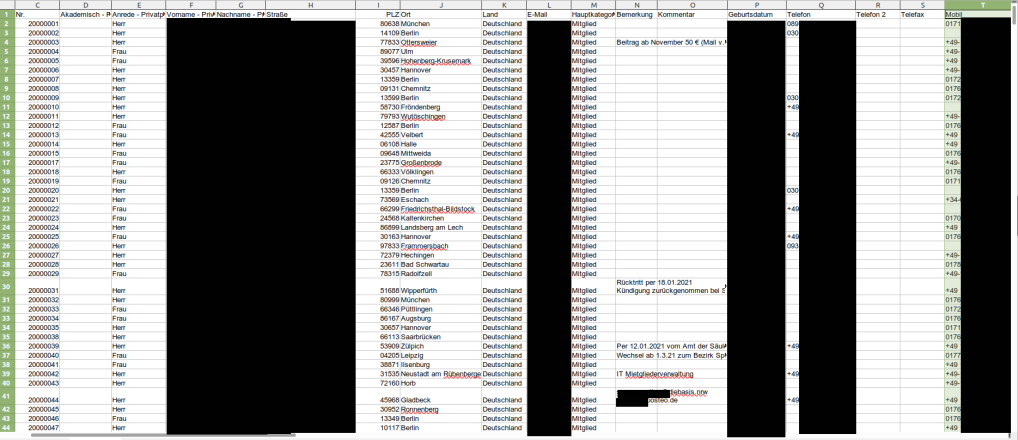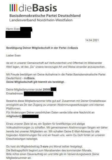 Persönliche Daten von Menschen bedürfen gemäß der DSGVO und dem gesunden Menschenverstand einer besonders sorgfälltigen Behandlung. Wir würden jedem Mitglied der Partei dieBasis empfehlen, sofort Kontakt mit der Führung der Bundespartei aufzunehmen und Aufklärung zu verlangen. Wir schicken Euch dazu noch eine Mail.