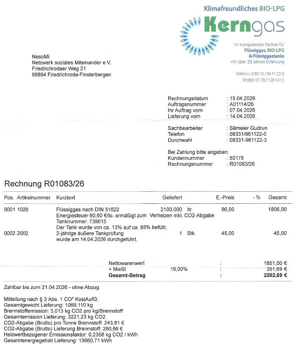 Schon gar nicht, wenn sie nach einer Rechnung aussieht. Aber es war mir ja klar – ich hatte jetzt schon länger drauf gewartet. Die Rechnung von der letzten Gaslieferung für das Vereinsferienhaus.