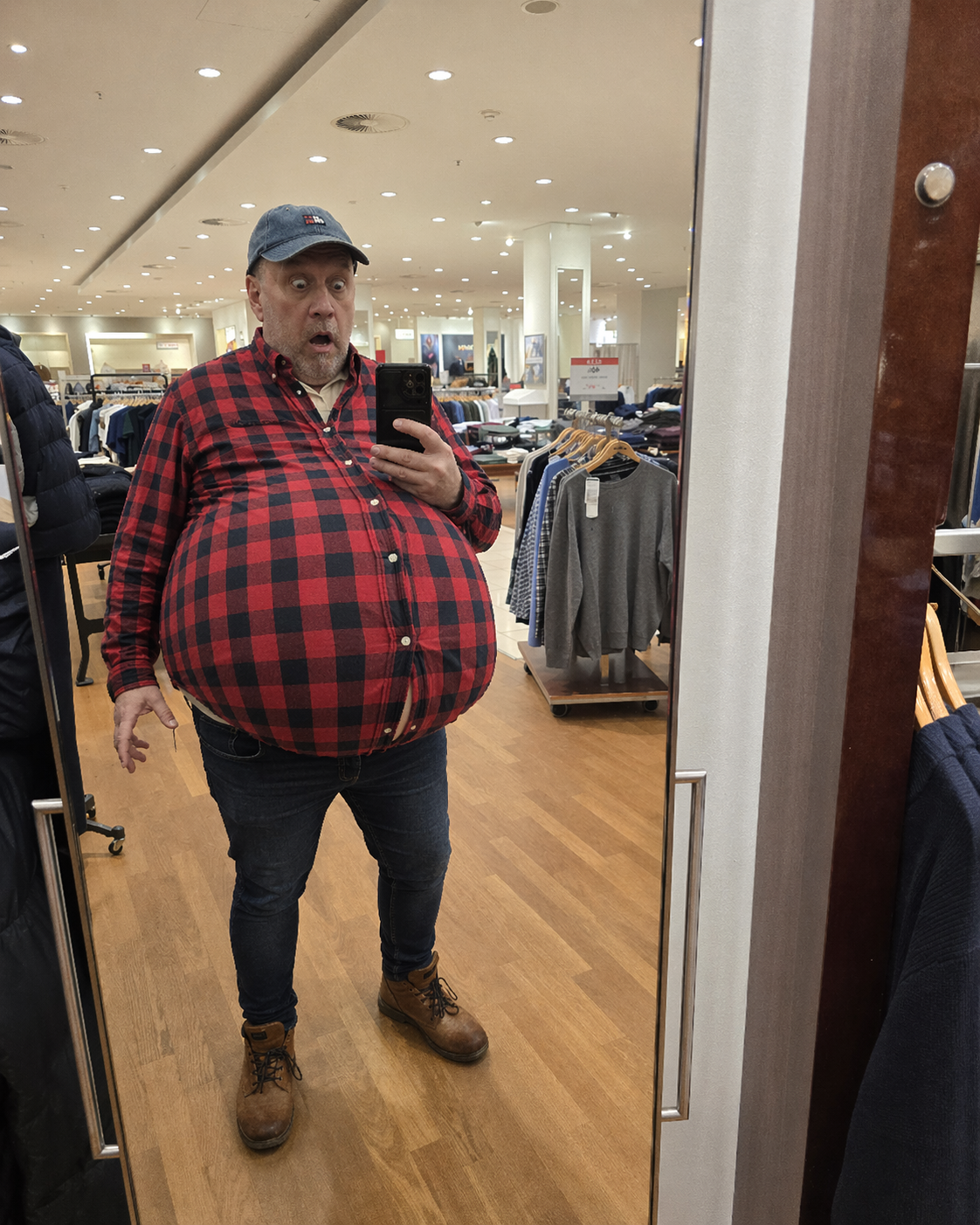 Optisch stört mich das nicht, dass der Bauch wieder um einiges gewachsen ist. Die Zeiten, wo ich durch die Gegend flaniere und vielleicht mal ein wenig flirte, sind schon lange vorbei 😄 Und ja, eigentlich hätte ich früher immer viel auf mein Aussehen gegeben – nicht nur was die Statur betrifft, sondern auch die Klamotten. Klamotten kaufe ich mir auch heute noch meistens hochwertig, und ich schaue nicht als Erstes auf den Preis.