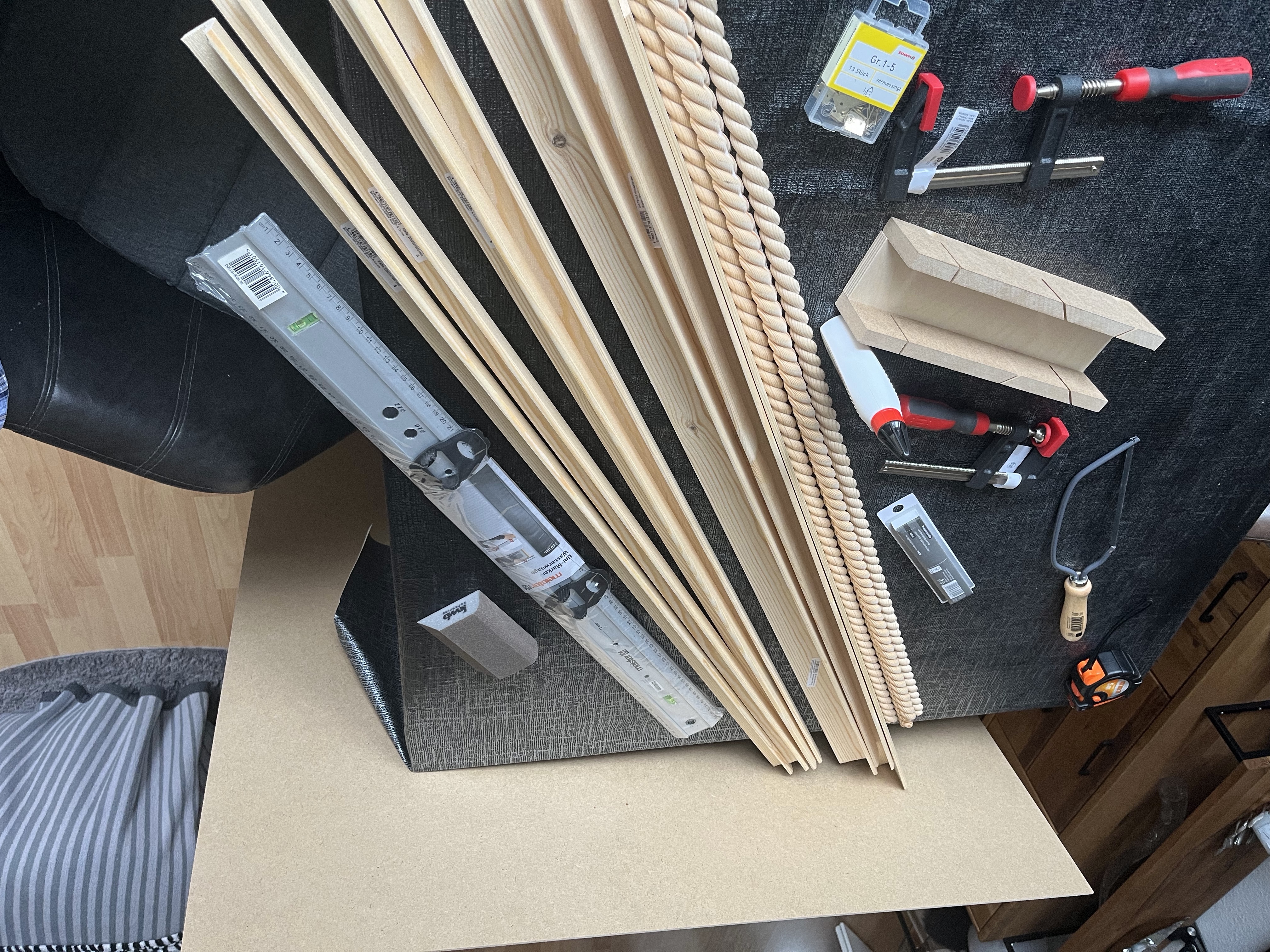 Es soll ein stabiler Rahmen in grau werden, mit einer MDF Platte von 3mm und Verzierungen auf allen vier Seiten.
