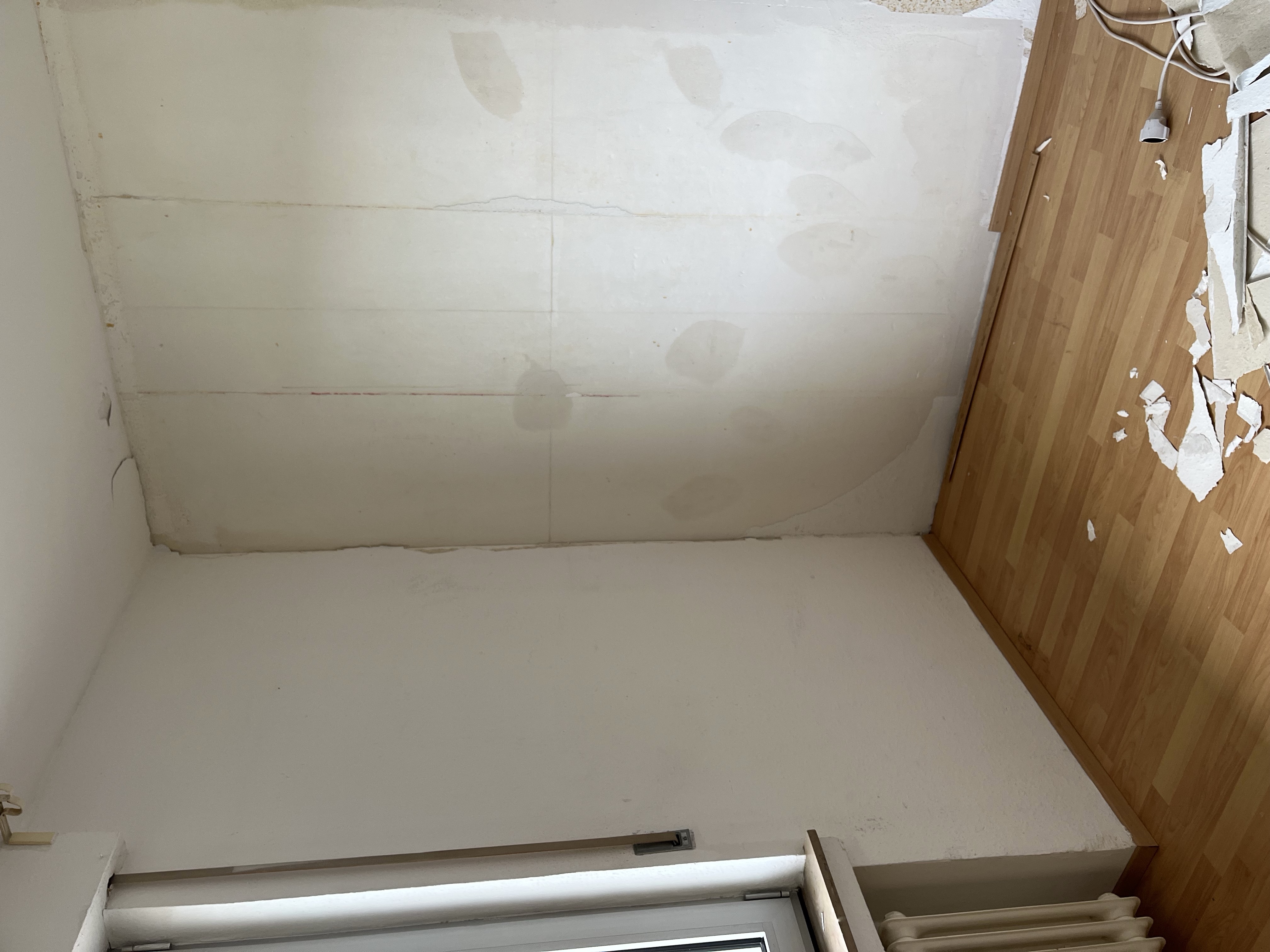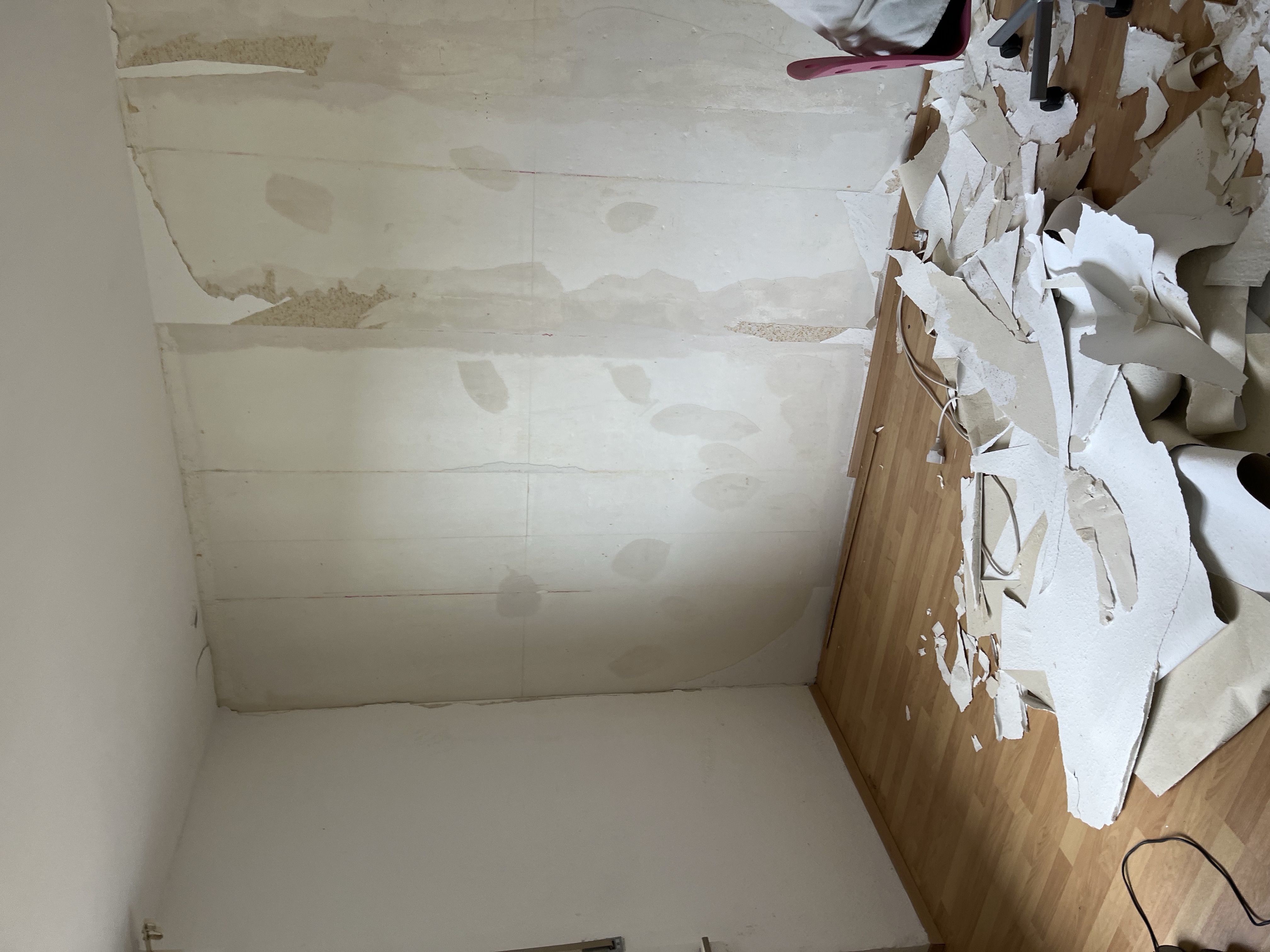 Wir rissen die komplette Tapete ab und machen neue Vlies Tapete dran.