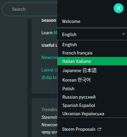 Ich denk mir, deutsch ist eine untergehende Sprache, viele Portale haben deutsch nicht mehr in der Sprachauswahl, bei Steemit gibt es auch kein Deutsch, dafür Italienisch und Französisch: