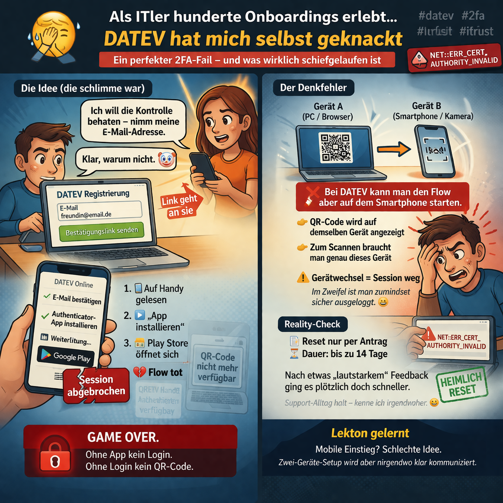 Ich habe es tatsächlich geschafft, mich bei DATEV selbst in einen perfekten Technik-Albtraum zu manövrieren.