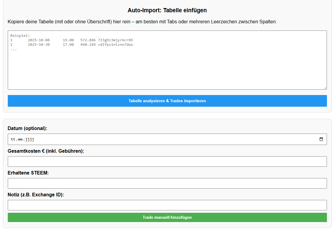 - Manuelle Trade-Erfassung (inkl. Gebühren)