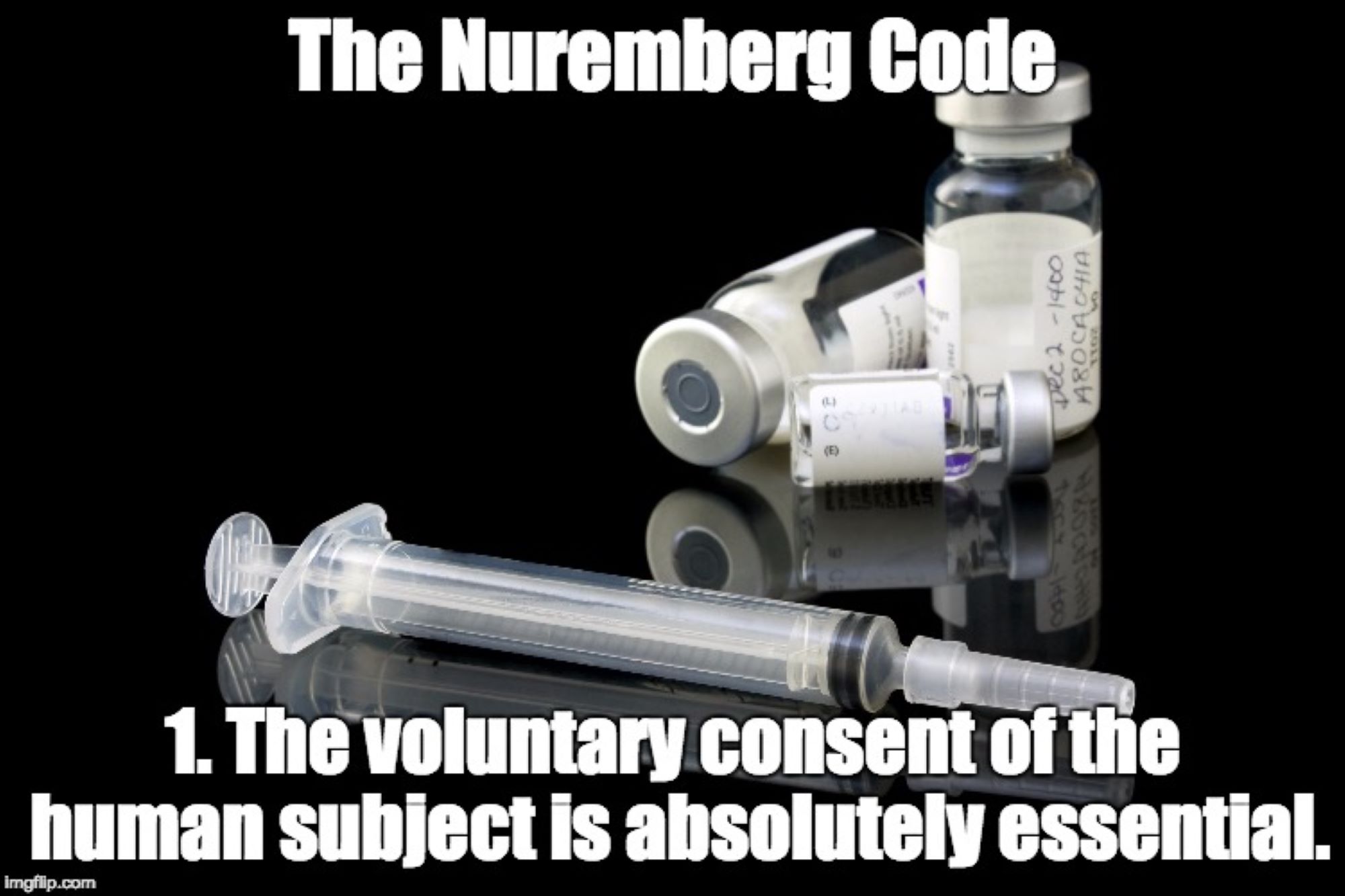 Aus dem Artikel: “Zwangsimpfungen verstoßen gegen den Nürnberger Kodex. Beachten Sie das Wort "forced". Tatsächlich verstößt jedes erzwungene medizinische Verfahren oder jede erzwungene medizinische Therapie gegen den Nürnberger Kodex.“