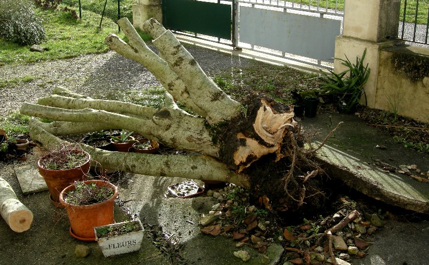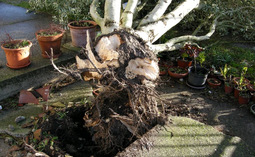 Es ist doch recht untypisch das Olivenbäume einem Sturm nachgeben.
