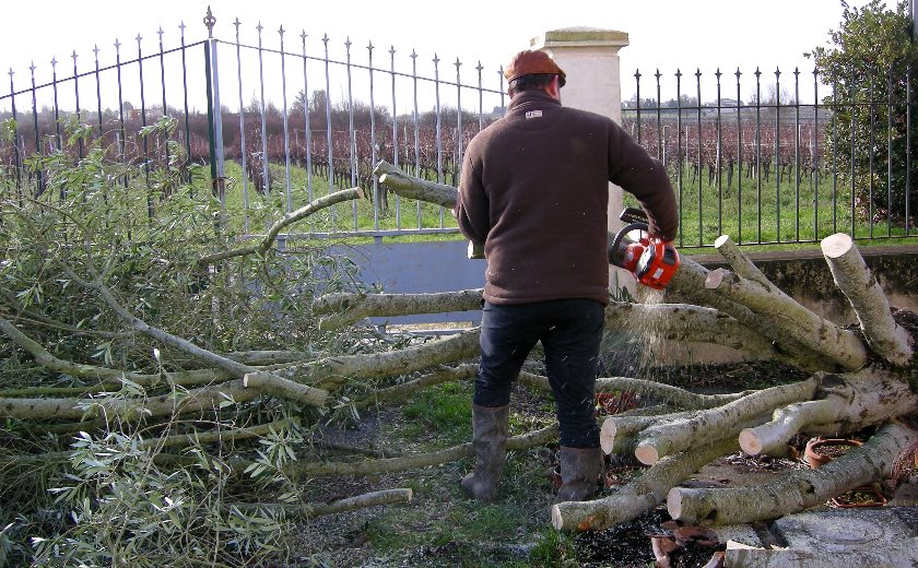 Zum Glück ist einer meiner Nachbarn Landschaftsgärtner und ein Spezialist im Umgang mit der Motorsäge. Es dauerte keine halbe Stunde und er stand bewaffnet mit der Säge da. Nachdem er zuerst im eigenen Garten die Sturmschäden besichtigt hatte, musste er selbst staunen, wie so ein grosser Baum einfach aus der Erde gerissen wurde.