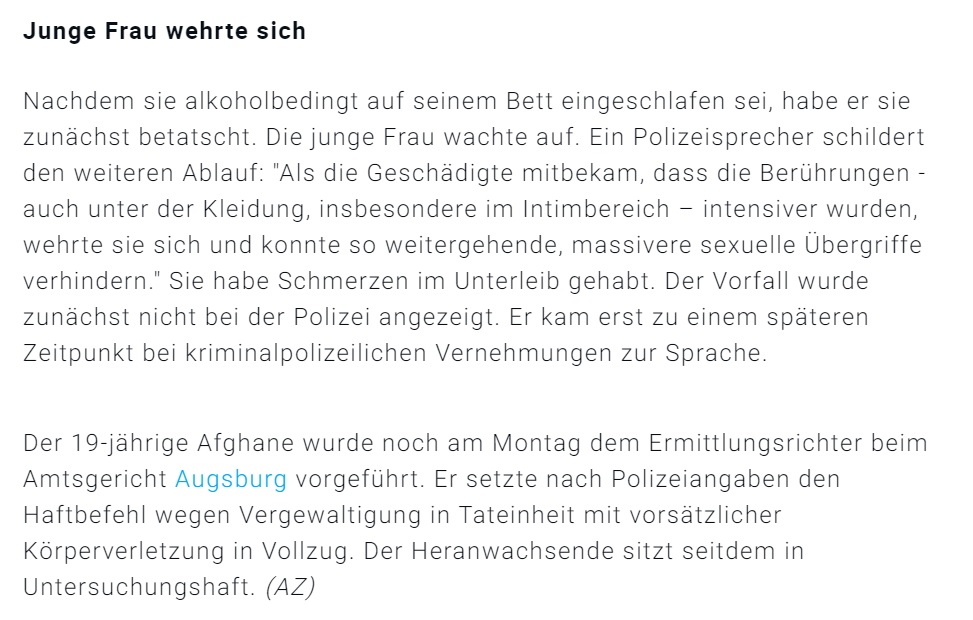 #Augsburg: Afghane vergewaltigt 17-Jährige. #Bereicherung