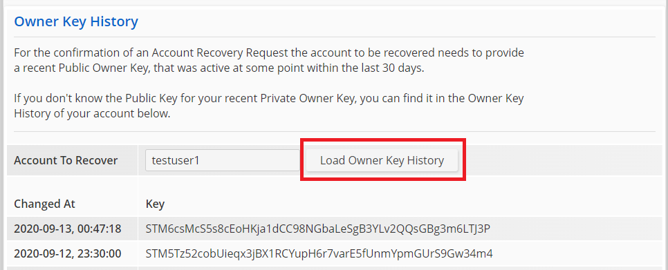 An der Stelle nützlich, wenn ihr zum private auch den public Owner Key gesichert habt. Ansonsten hilft ganz unten die "Owner Key History", damit könnt ich euch die bisherigen public Keys anzeigen lassen.