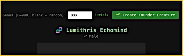 I’d created a creature with Genus 777 for future marriage plans with your son, but unfortunately I accidentally chose the wrong gender. I’ll have to go back and fix that :-)