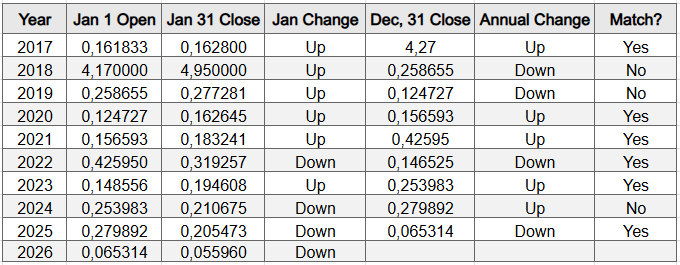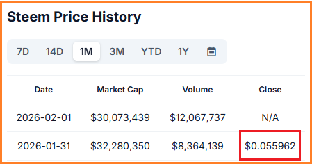 Steem price end of January 2026 - results