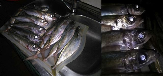 Gestern Abend um 22.30 Uhr fuhr der Wagen eines Freundes vor, der das Vergnügen hatte beim Angelausflug dabei zu sein und er drückte mir eine Kiste mit 25 Stöckern ( Bastardmakrele ) in die Hand.