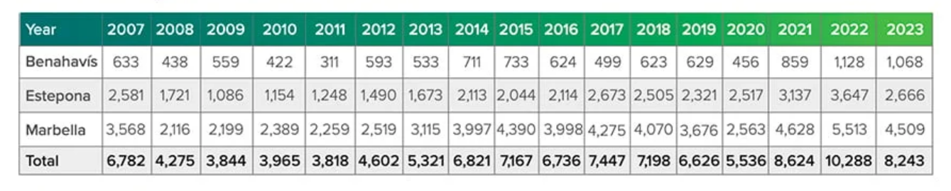 Nun, zuerst einmal natürlich gutes Wetter über´s ganze Jahr, das Meer vor der Haustür und die Berge im Rücken, eine gute Infrastruktur wie z.B. öffentliche Verkehrsmittel, Autobahnen, Nationalstraßen, Flughäfen, Bootshäfen, Sportmöglichkeiten, eine friedliche weltoffene internationale Gemeinschaft, und eine gute Sicherheitslage. Das alles hat die Region Málaga mit den Hotspots Marbella, Benahavis, Estepona und Sotogrande zu bieten und dies dokumentiert sich in einer fast nur steigenden Anzahl von Zuwanderern mal ganz abgesehen von den Millionen Touristen die diese Region für ihre Oster-, Sommer-, Herbst- oder Winterferien bevorzugen. In der Natur der Sache liegt dann natürlich auch das die Immobilienpreise sich positiv entwickeln.