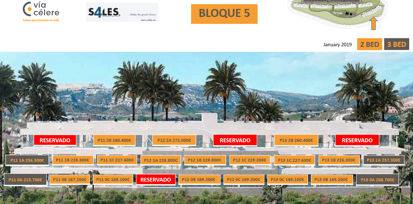 Hier war bei Start der Vermarktung in Q2/2018 (Off-Plan also Green field) das Preisgefüge von 180k € - 330k € für 2 oder 3 Schlafzimmer Wohnungen und Penthäuser (siehe Bild)