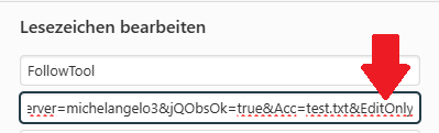 Damit das bei euch auch funktioniert, bearbeitet bitte euer Lesezeichen in dem am ihr am Ende der Url &EditOnly anfügt. So sieht das bei mir aus: