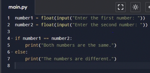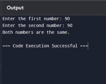 - Step 4: Print("Both numbers are the same.")If the condition on line 4 is true (i.e. the numbers are equal), this line will execute and print the message: "Both numbers are the same."