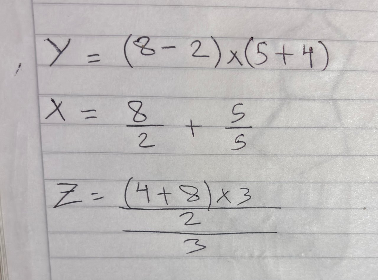 Y = (8 - 2) × (5 + 4) # Y = 6 × 9