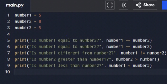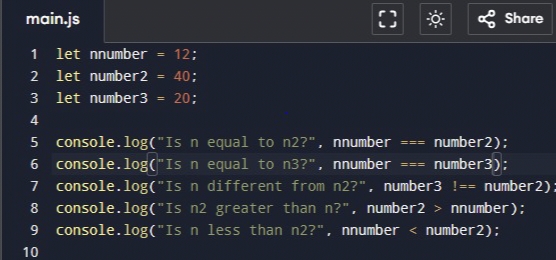 As from their name, in programming, the comparison operations are used to compare two values and show the boolean results. And the boolean results tell that either the value are equal or not. So we can say that, they have a crucial role in building a program as they help them to make decisions on the basis of relations between the values. Different types of comparison operators are used and let's have a look at them: