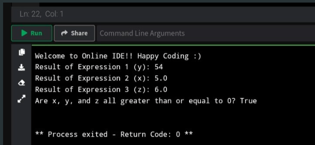 Print (F " are x,y,z all greater than or equal to 0? {all_positive})