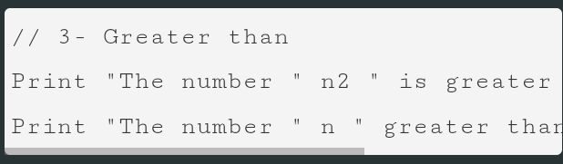 For comparison operation to take place two or more variables must be put in place. Which would return a true or false (Boolean result). Examples of these comparison operative would be explained below thus;