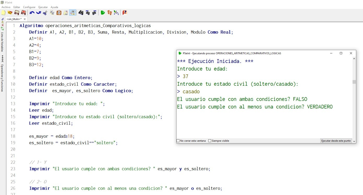Ejemplo práctico de operaciones aritméticas y operaciones de comparación