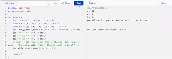 double Z = ((4 + 8) * 3) / (2 * 3); // Z = 6