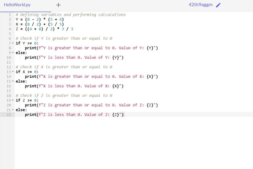 The results of the calculations show that all three variables (Y, X, and Z) are greater than or equal to 0. Let's break it down: