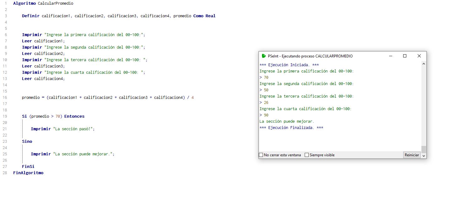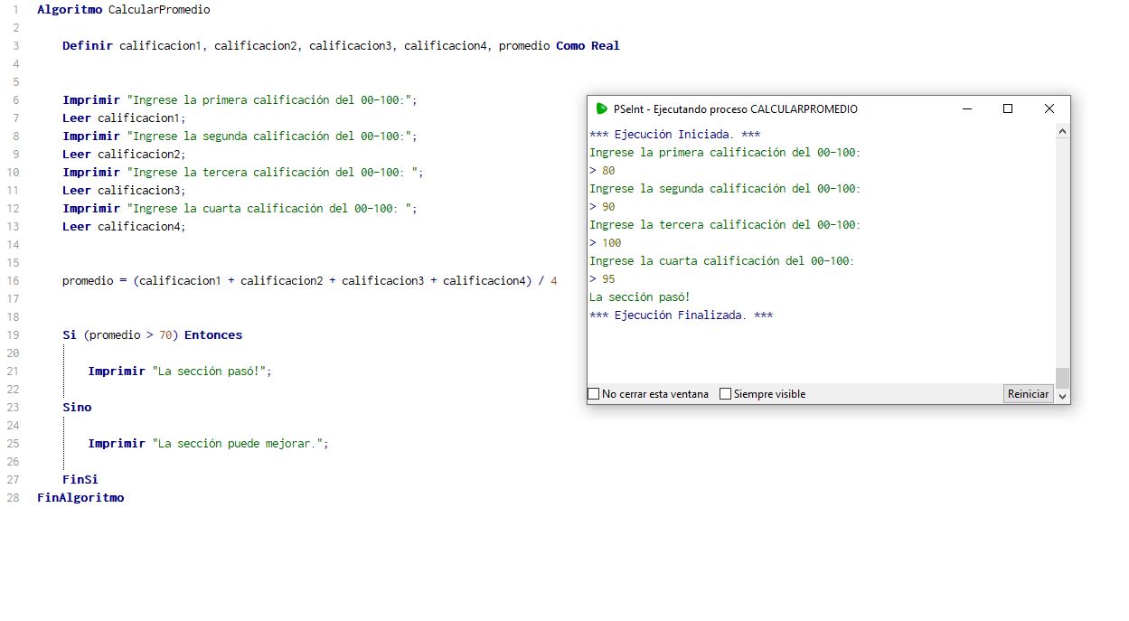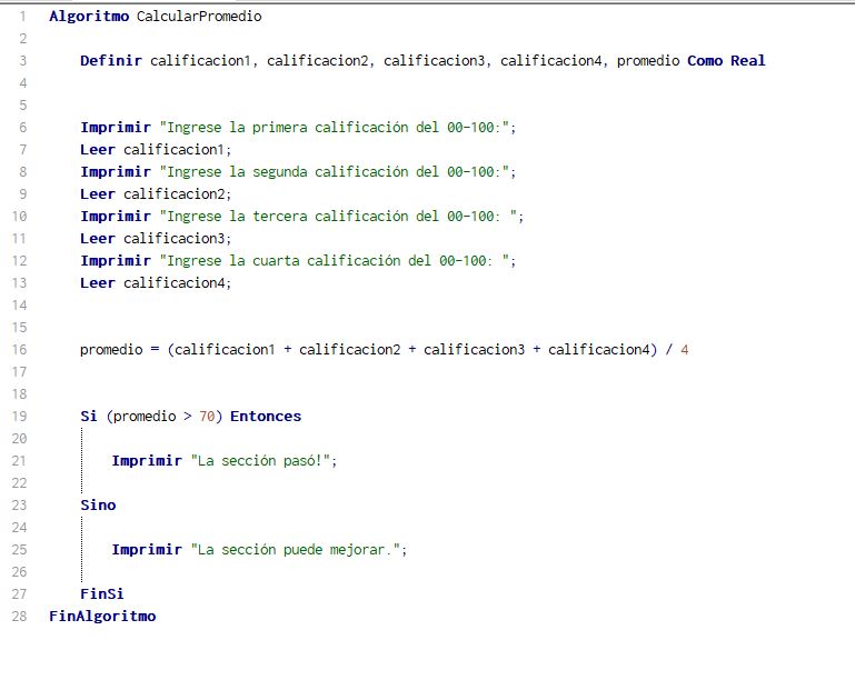 promedio = (calificacion1 + calificacion2 + calificacion3 + calificacion4) / 4