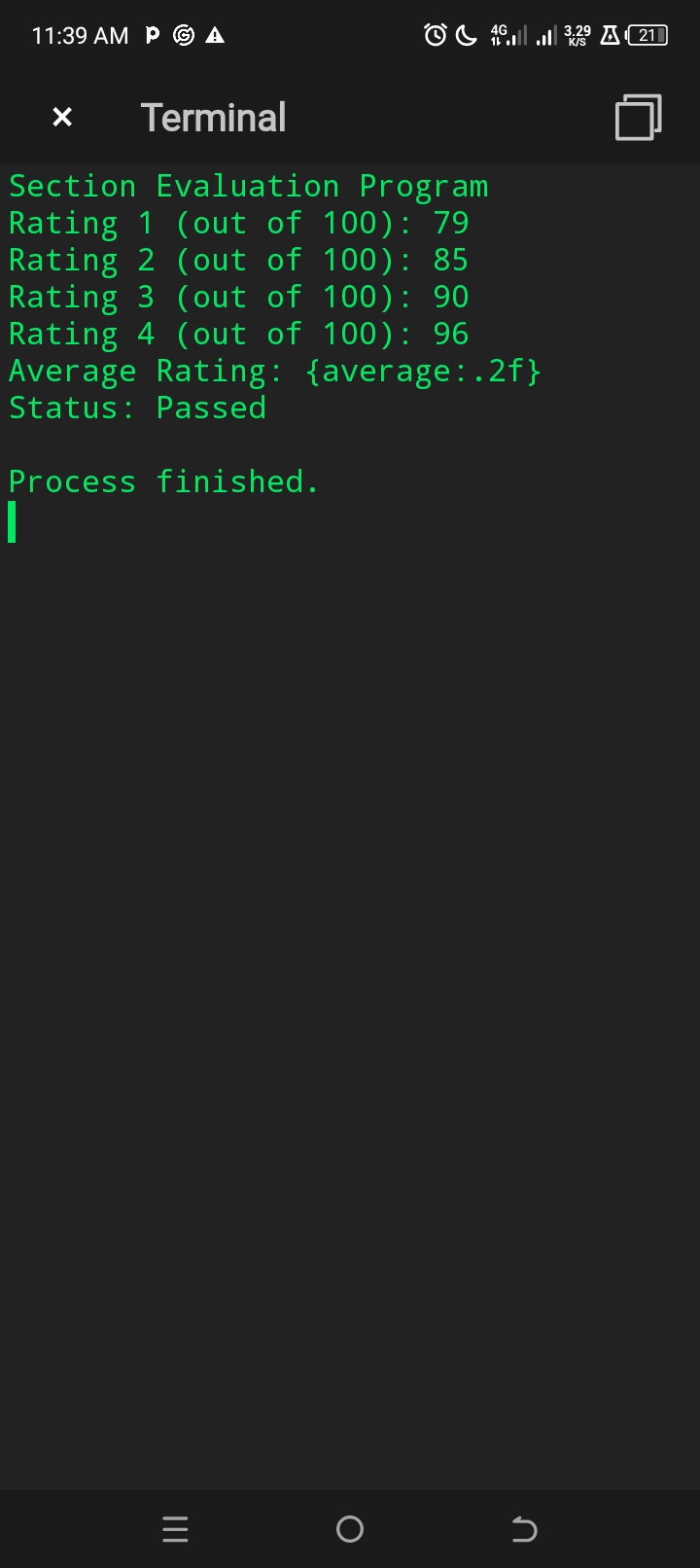 For the image above, the terminal show how I insert value that can give me an average greater than equal to or greater than 70 and this is what displayed as the final result, passed👍