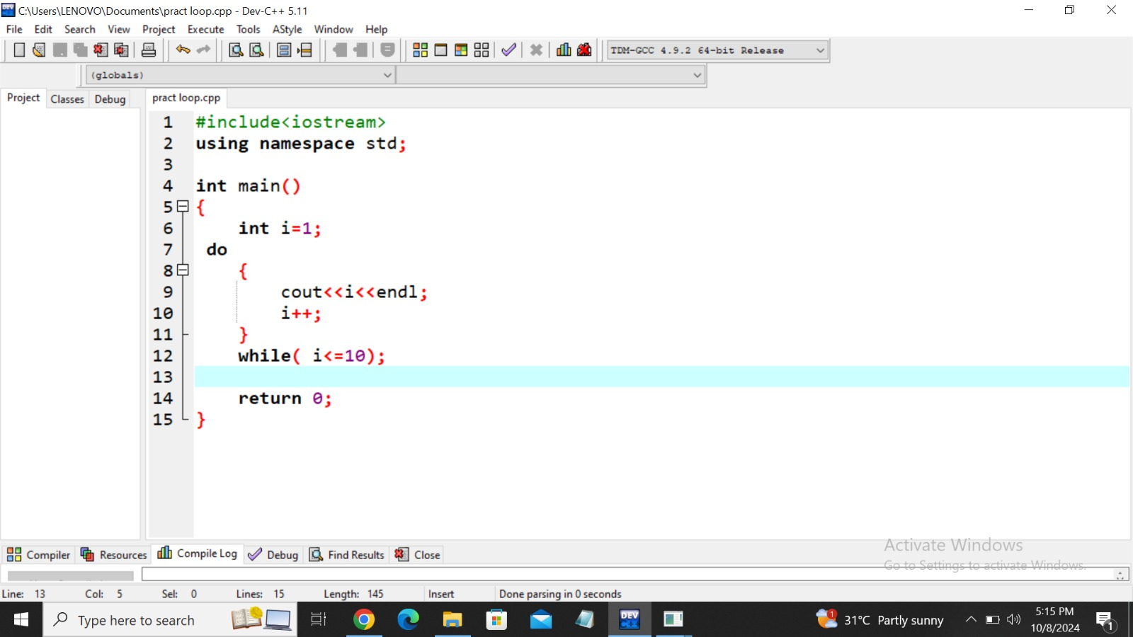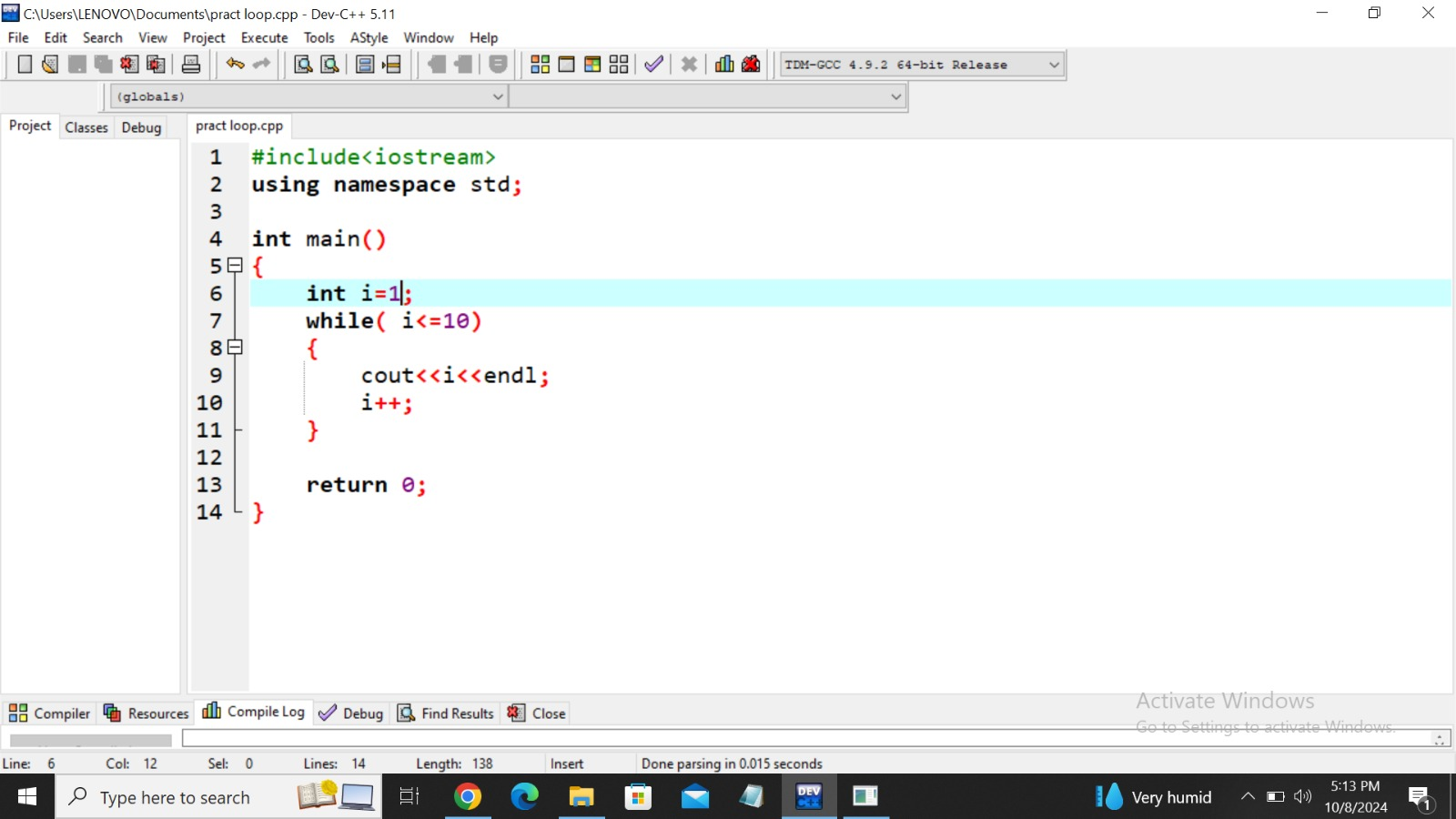 Repeats a block of code until a given condition is true. To see if it is true. If it is true, it starts executing the code inside the loop. If the incrementing becomes greater than five, it wraps