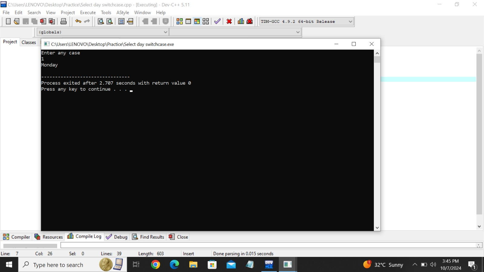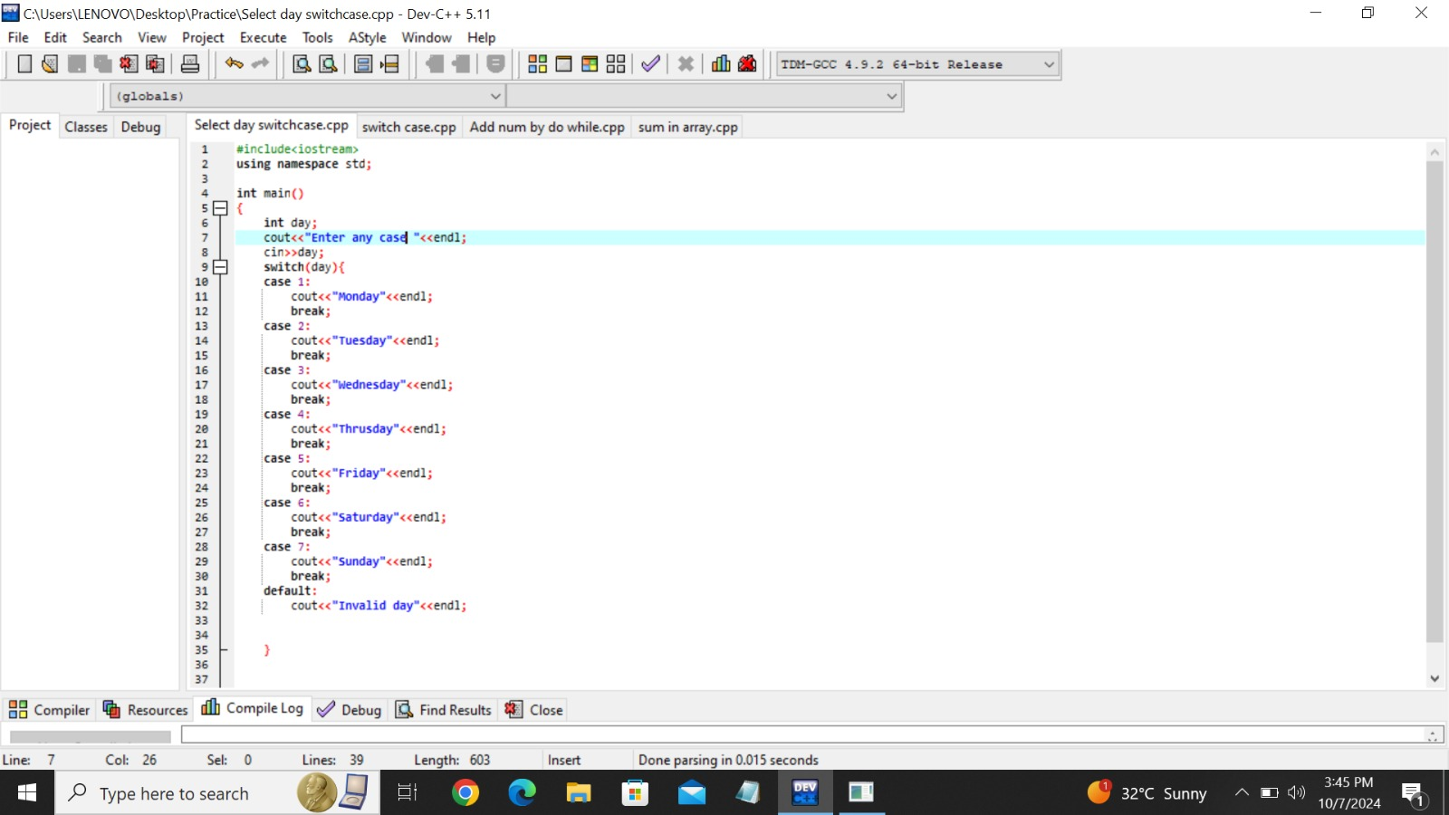 In this case want to sum. After summarizing, a confirmation message is displayed and after pressing any, screen is cleared.