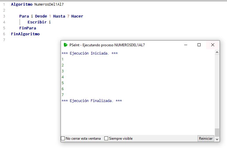Para i Desde 1 Hasta 7 Hacer