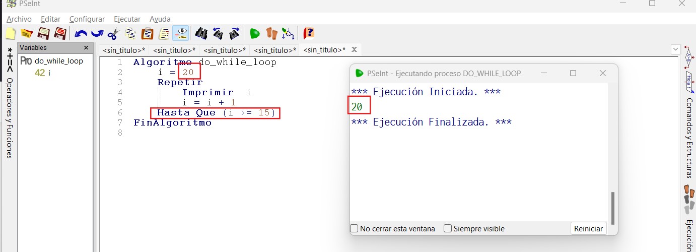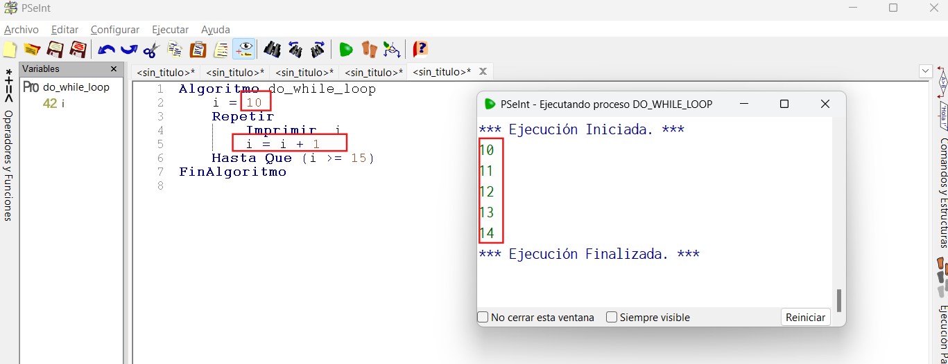 Next, we have the while loop, which logic demands the program to do an increase (+1) to the counter until we get to the number the users enter. In our case, it is 15 as required. For each loop a sum operator is executed, adding the counter to the total.