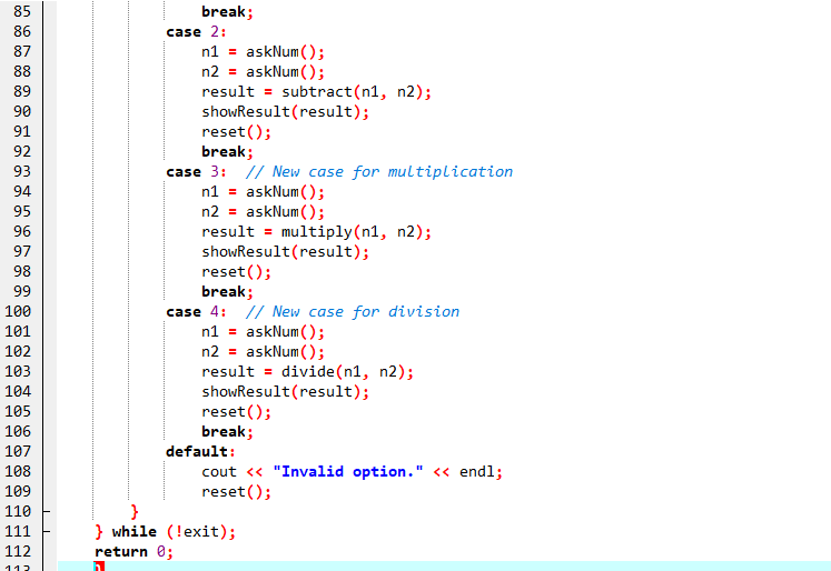 I have added two new cases in the main algorithm called case three and case four and they will work with the rest of the operators. This update will fix all calculations in the calculator. In which you can do addition, subtraction, multiplication, and division.