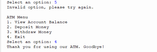 Print "Thank you for using our ATM"