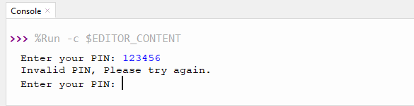 Print "Invalid PIN Please try again"