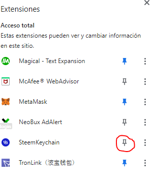Once downloaded, click on the puzzle icon to see your current extensions and anchor the SteemKeychain one and always make it visible.