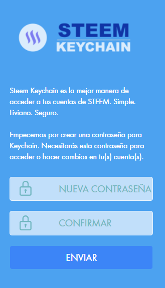 The first thing we will be asked will be to create a password which will serve to unlock the extension and access your Steem account, I recommend using one different from any of your Steem keys.
