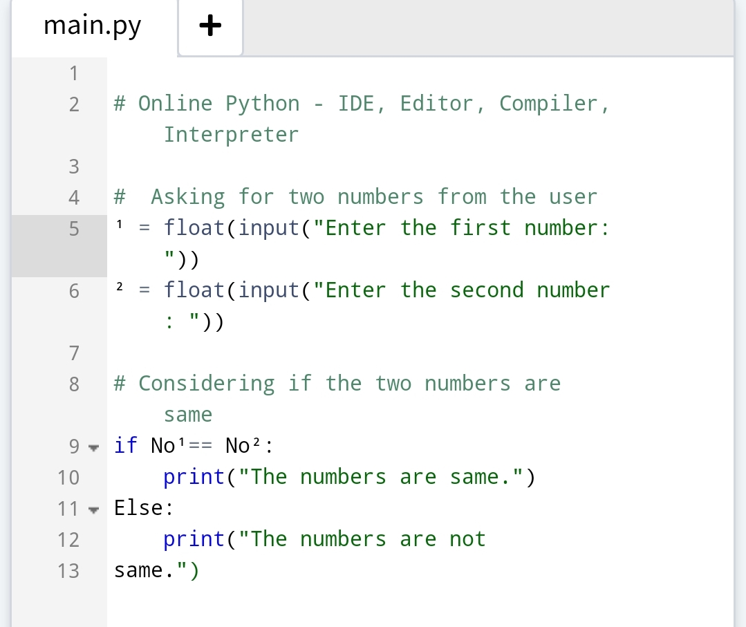 The following Is an example Python program. The program will request two numbers .It will then verify they are the same.