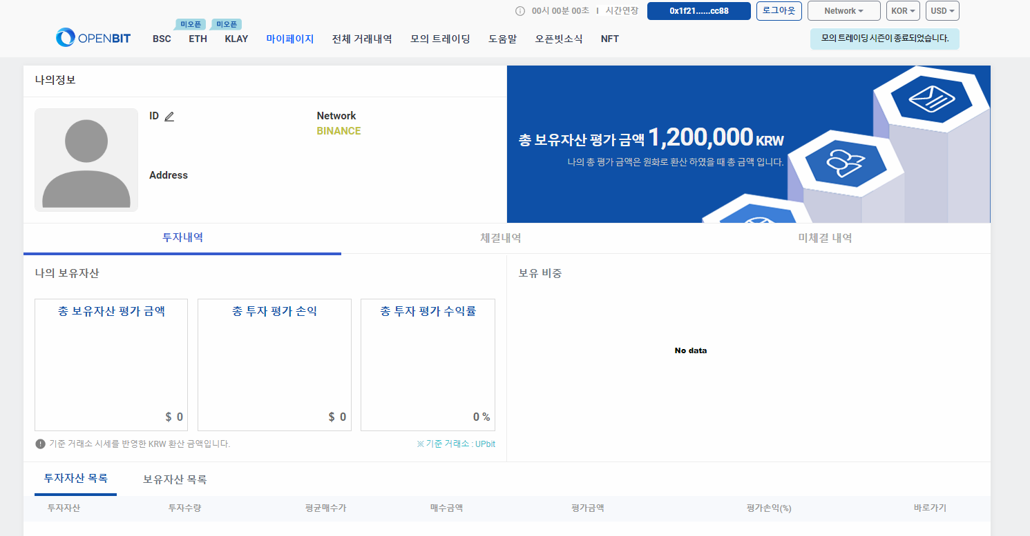 개발팀에서는 오픈빗 수정버전의 마이페이지 작업이 진행중입니다.
