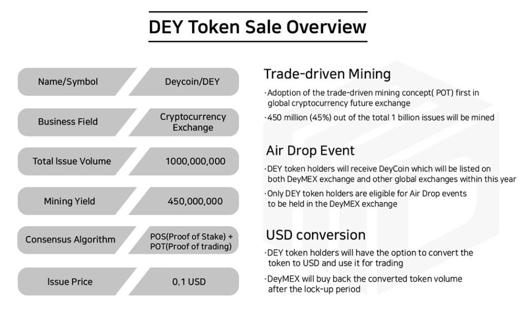 DEY Token 은 추후 데이멕스 내에 상장되어 현물거래를 할 수 있으며,