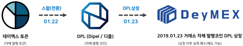 드디어 1월 23일 DeyMEX 거래소 자체발행 코인 DPL (Diple /디플)의 상장발표로 인해 데이맥스토큰의 상용화가 가능해졌습니다.