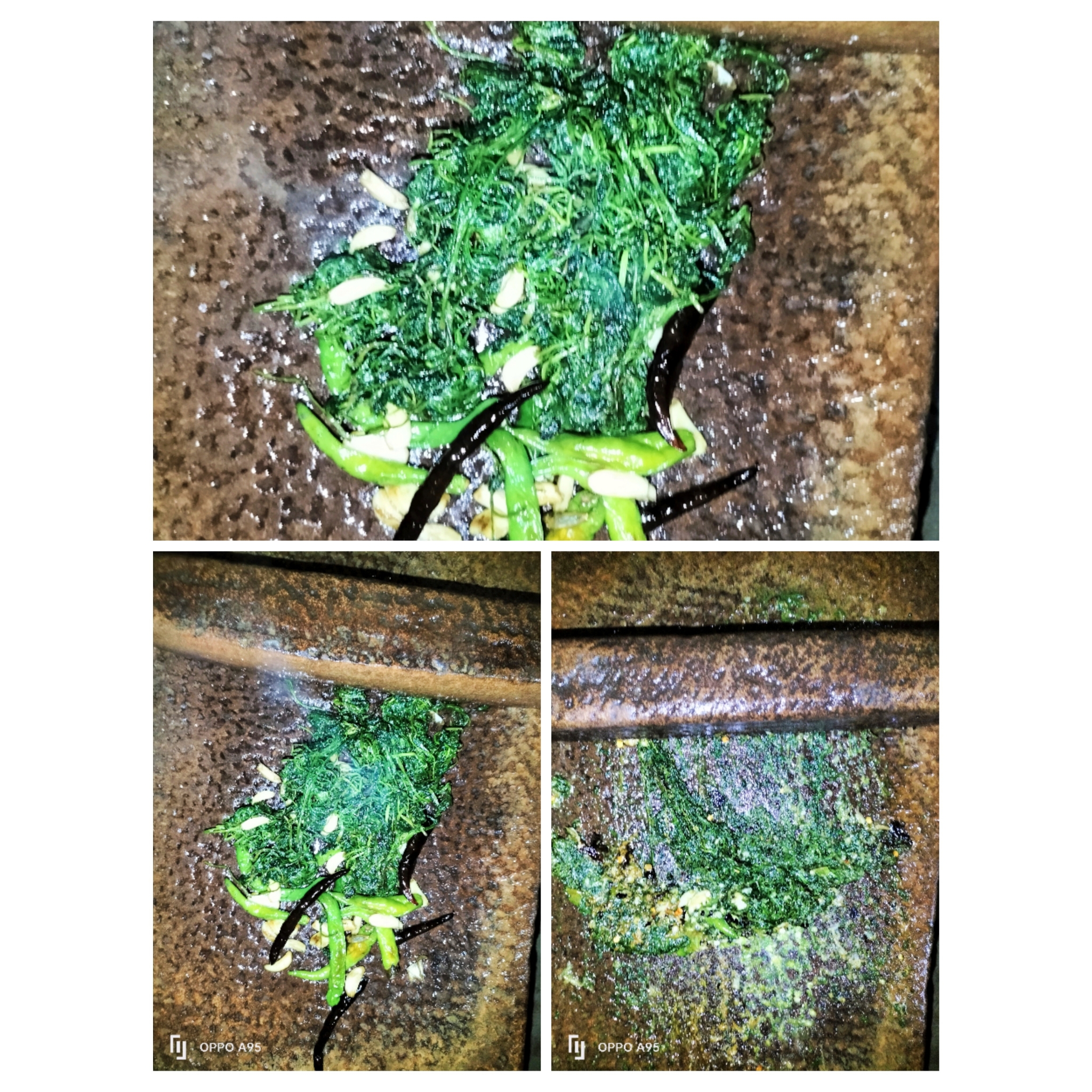 ধনেপাতা গুলো শীলপাটায় দিয়েছি ও বেটে নিয়েছি।