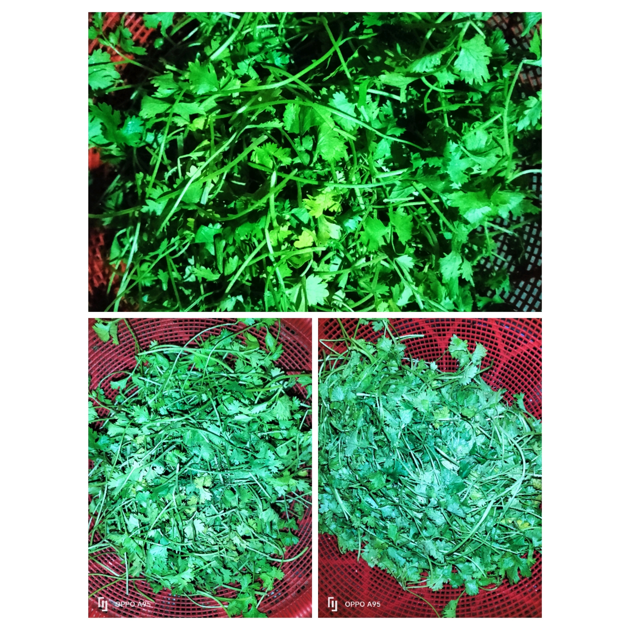 প্রথমে ধনেপাতা বেছে পরিস্কার করে ধুয়ে নিয়েছি ও জল ঝড়িয়ে নিয়েছি।