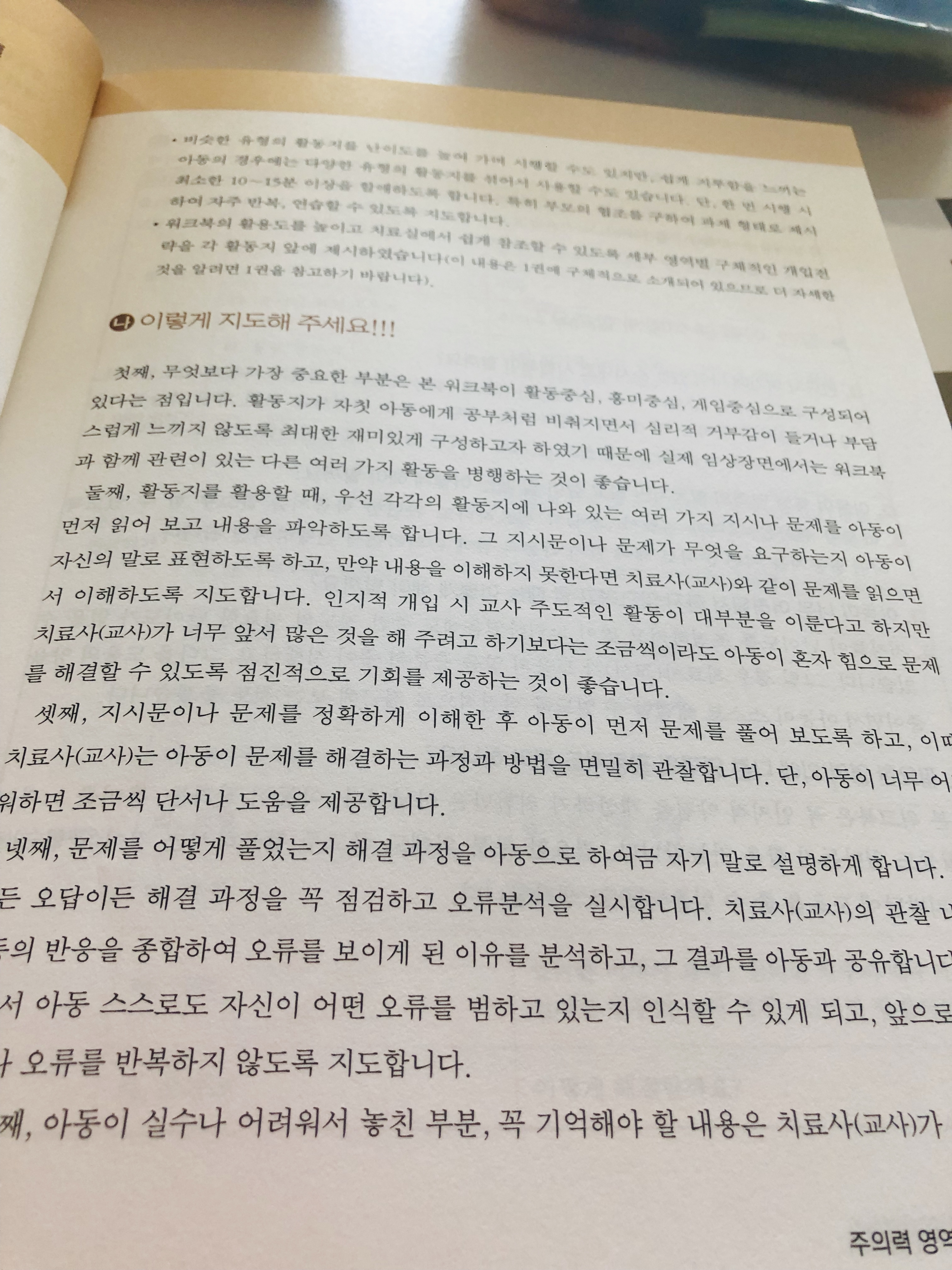 과인행동장애나 학습장애 아동에게 결핍된인지능력을 높이려고 사용하는 책인듯