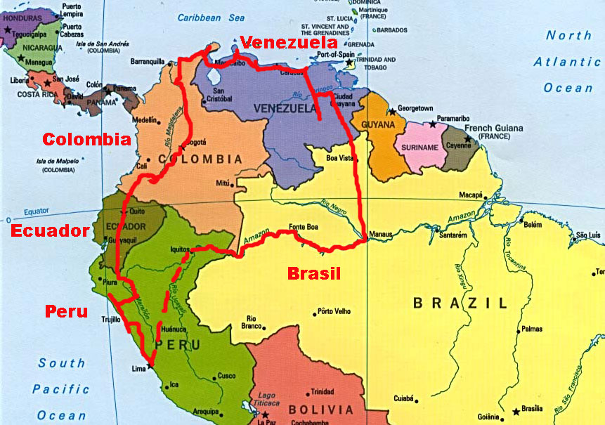 이것은 우리 나라 베네수엘라에서 페루까지의 여행 경로였습니다